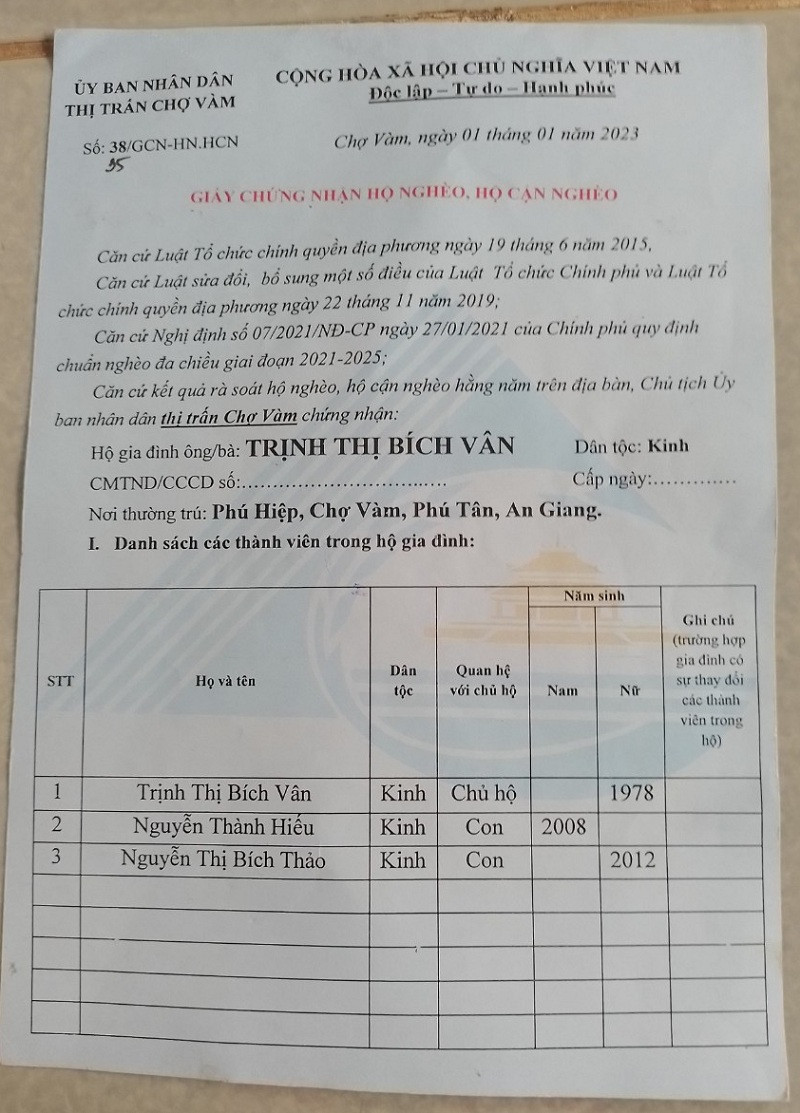 Gia đình chị Vân là hộ nghèo nhiều năm nay.